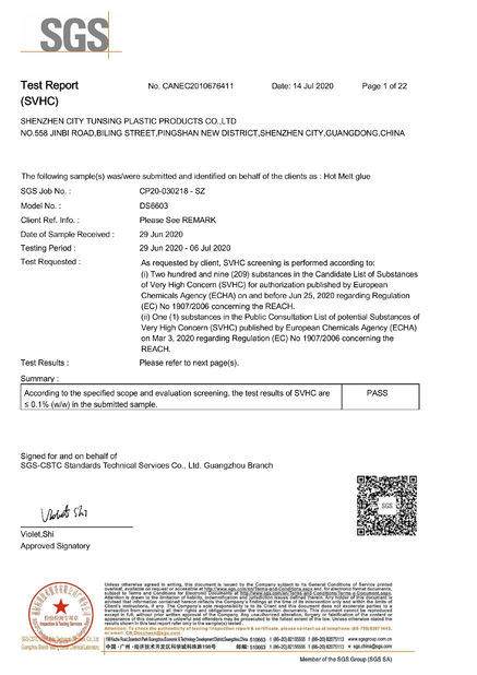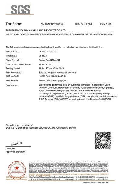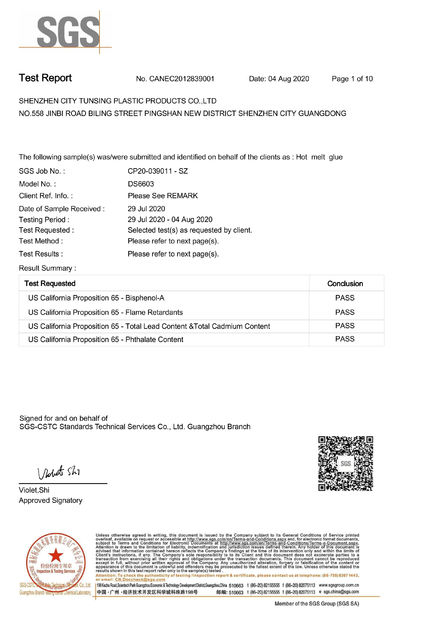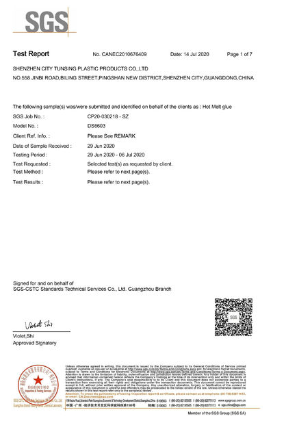 จีน Shenzhen Tunsing Plastic Products Co., Ltd. การรับรอง